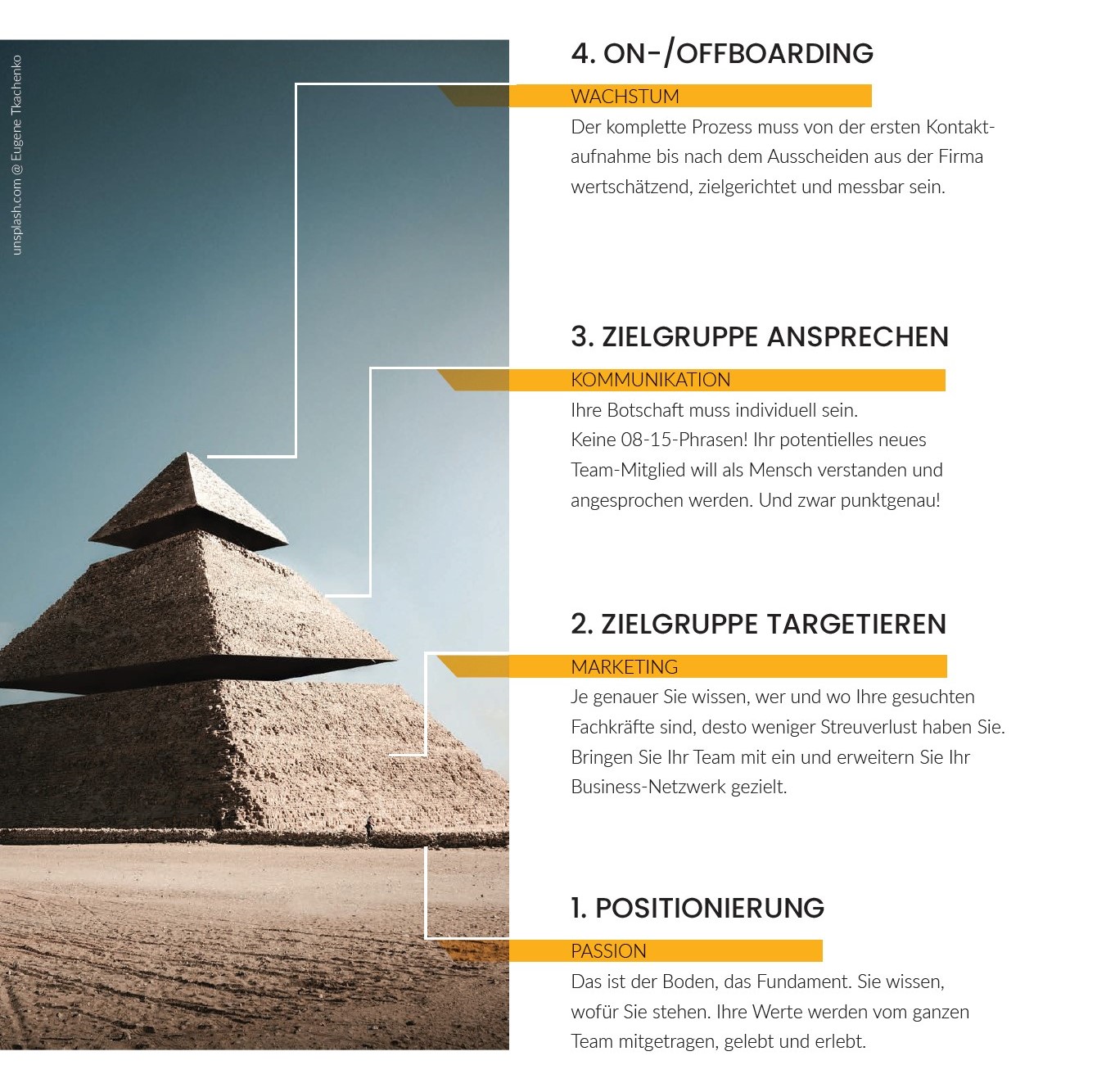 Wer passt zu Ihnen, zu Ihrer Kultur, Ihren Werten? Wer sich mit Ihrem Unternehmen identifizieren kann, engagiert sich überdurchschnittlich. Denn Geld spielt nur eine Rolle, wenn alles andere nicht stimmt. Definition Ihre Zielgruppe analog Kundenmarketing, nicht nur über Fakten, wie Ausbildung und Wissen, sondern auch über Vorlieben und Emotionen.